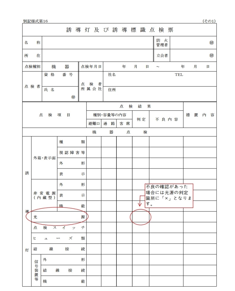 <誘導灯 点検票>