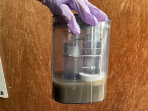 吸引された水と汚れは回収タンクに回収されます。運転席と助手席分のリアルガチ画像です(震え声)