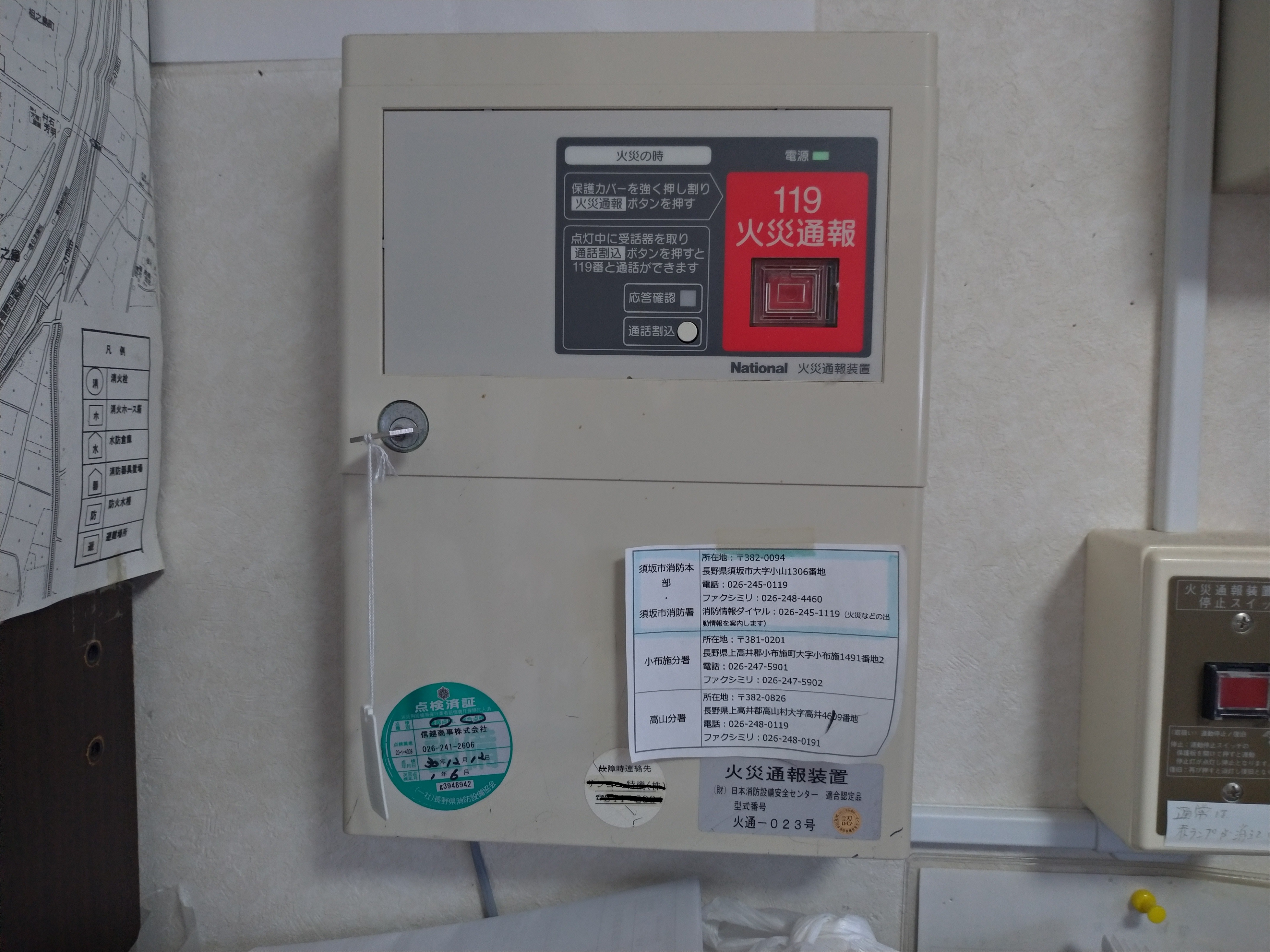 火災通報装置は起動時に消防署への自動通報するとともにアナウンスが流れます。